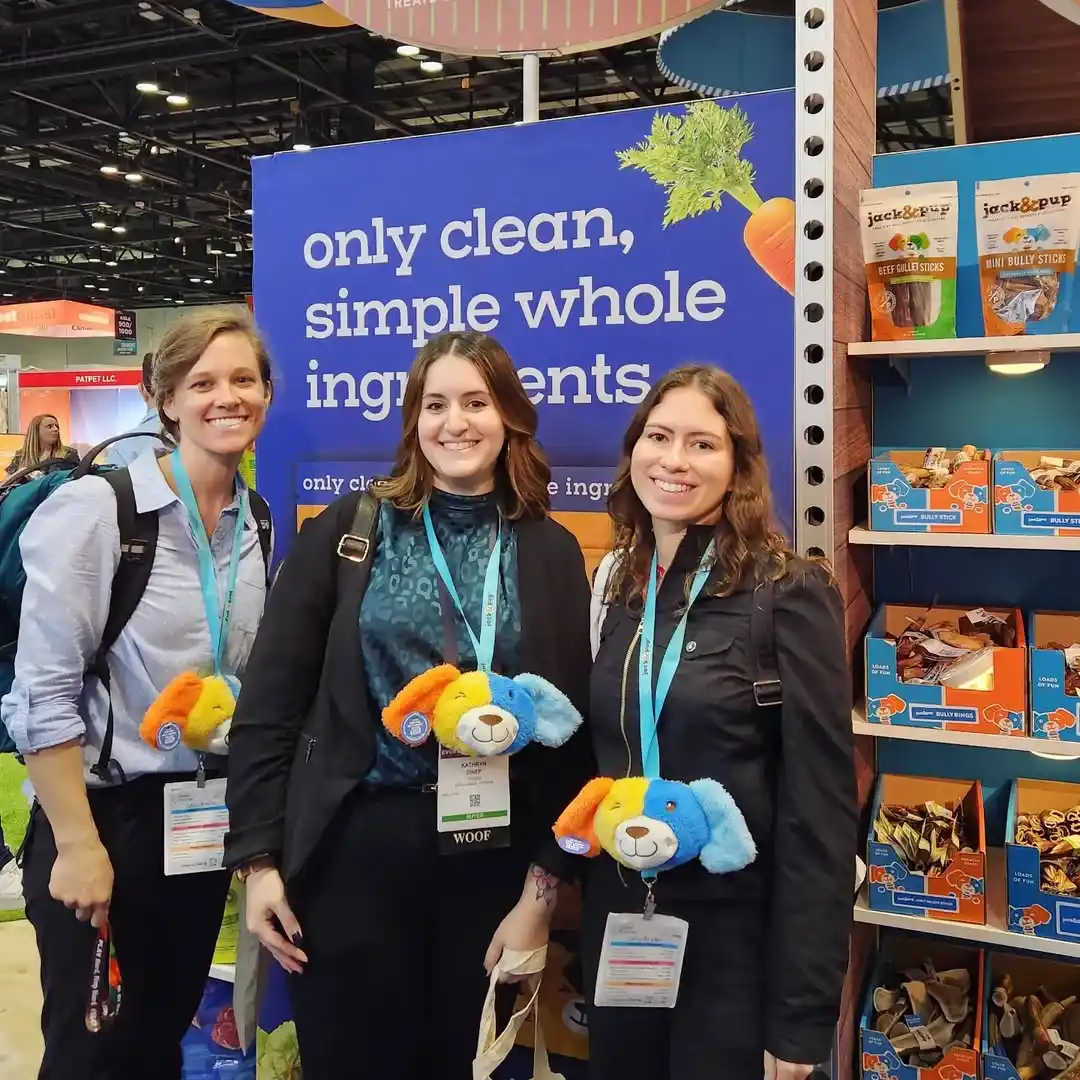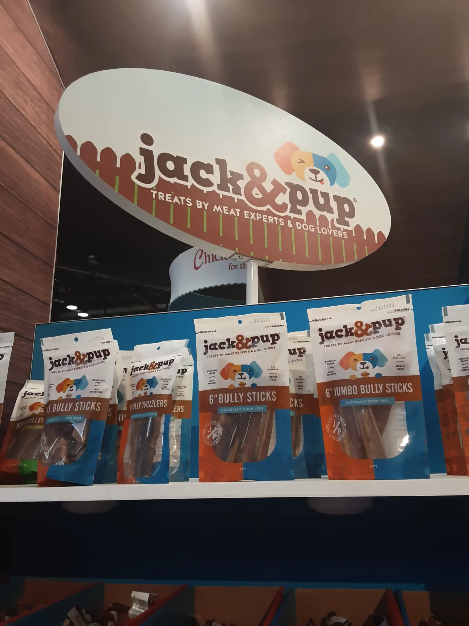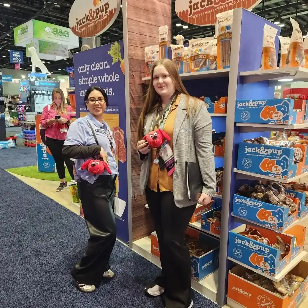 Inside the “dog house,”product displays were carefully organized to highlight the full range of Jack & Pup treats, from natural chews to specialty snacks. Bright shelving, clear messaging, and approachable product layouts made it easy for buyers and distributors to explore the brand.