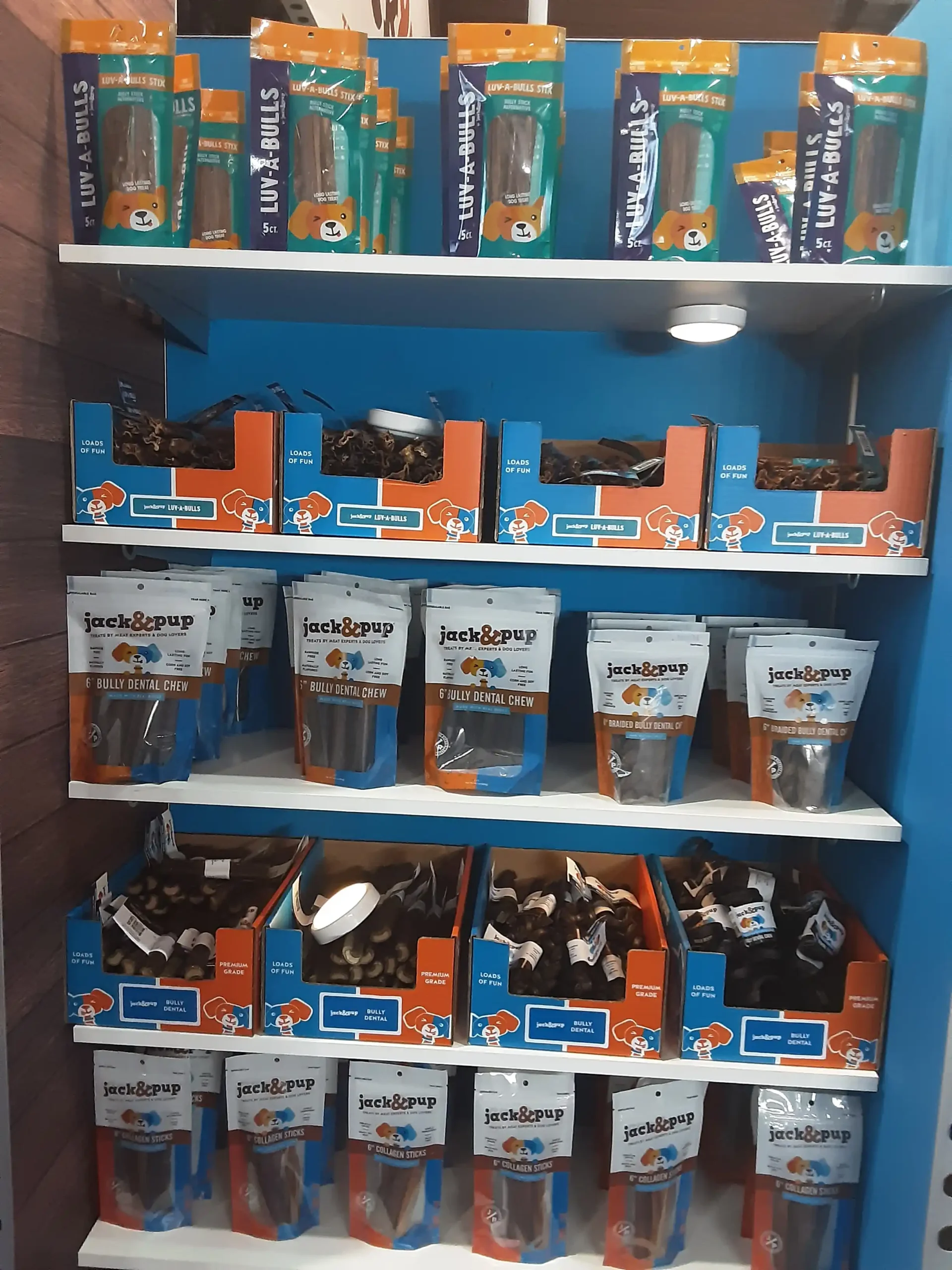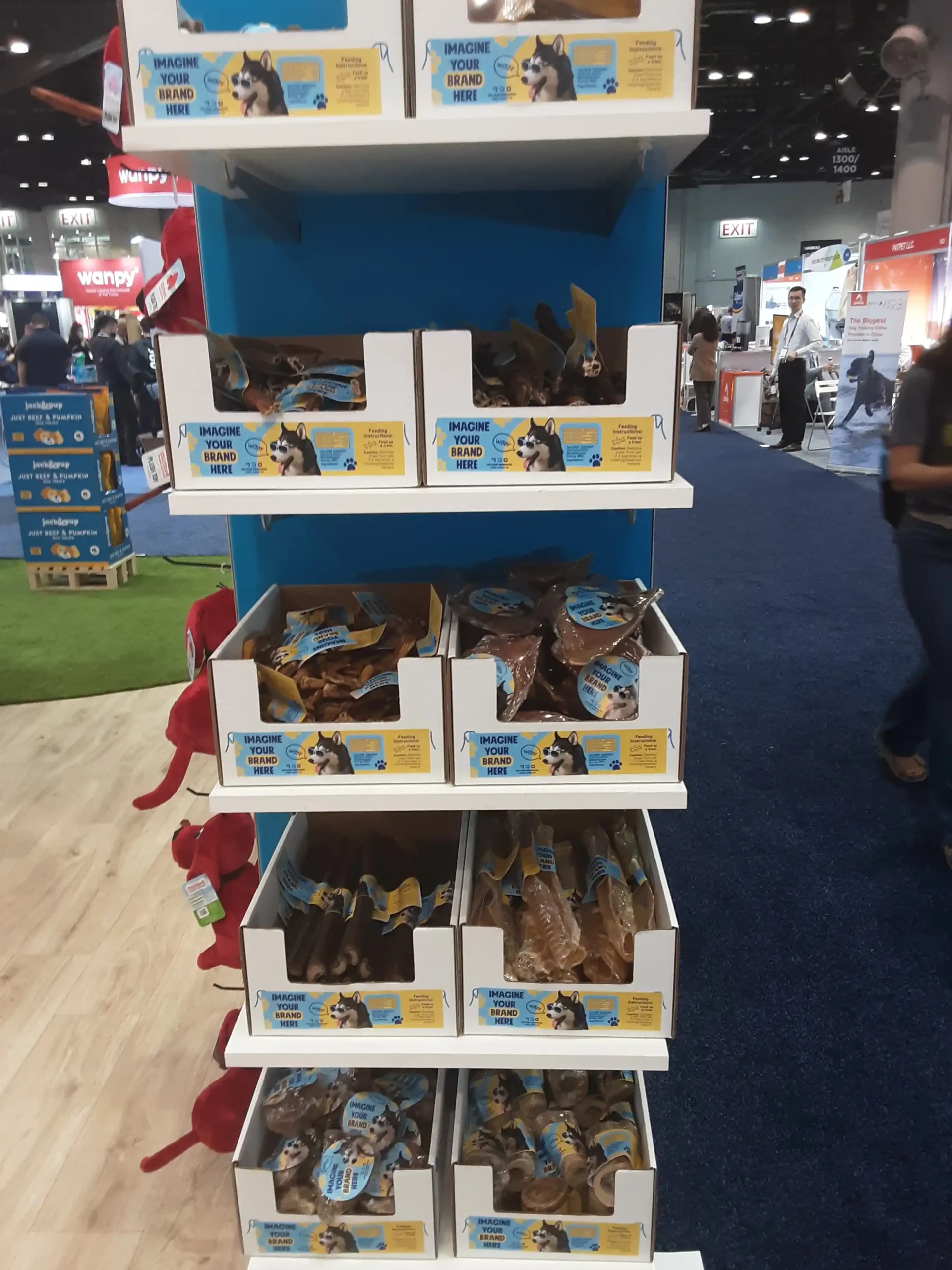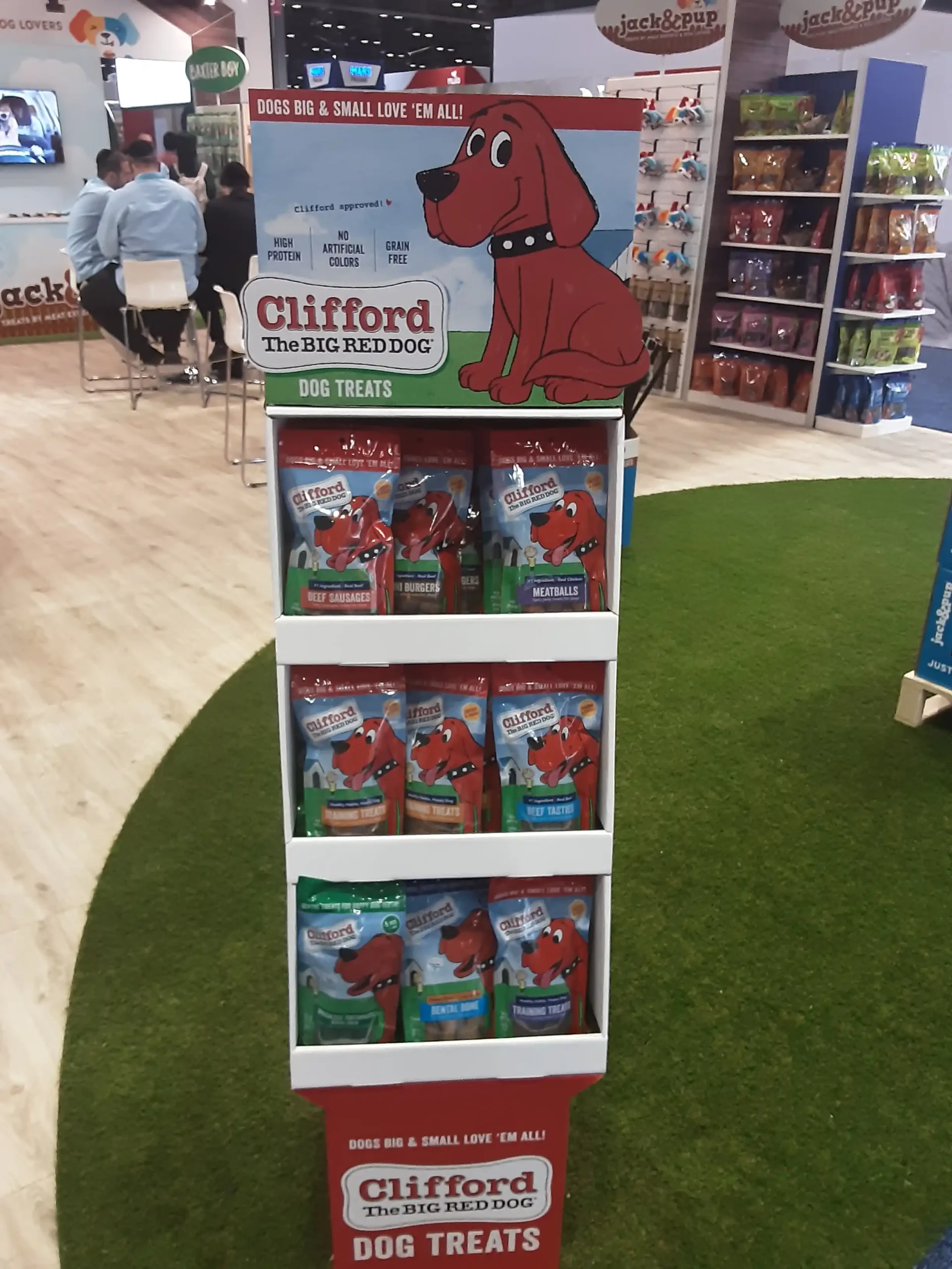 Inside the “dog house,”product displays were carefully organized to highlight the full range of Jack & Pup treats, from natural chews to specialty snacks. Bright shelving, clear messaging, and approachable product layouts made it easy for buyers and distributors to explore the brand.