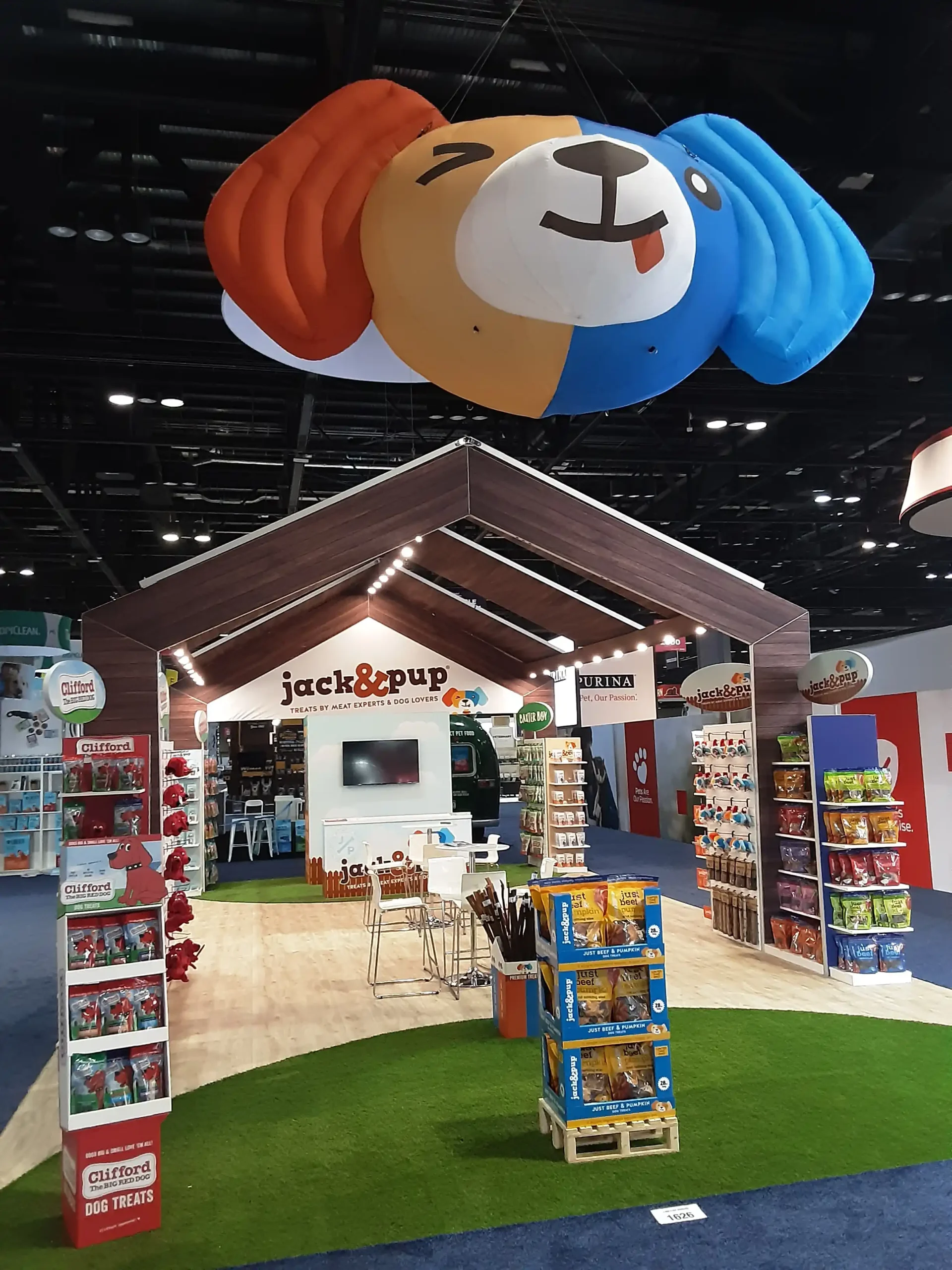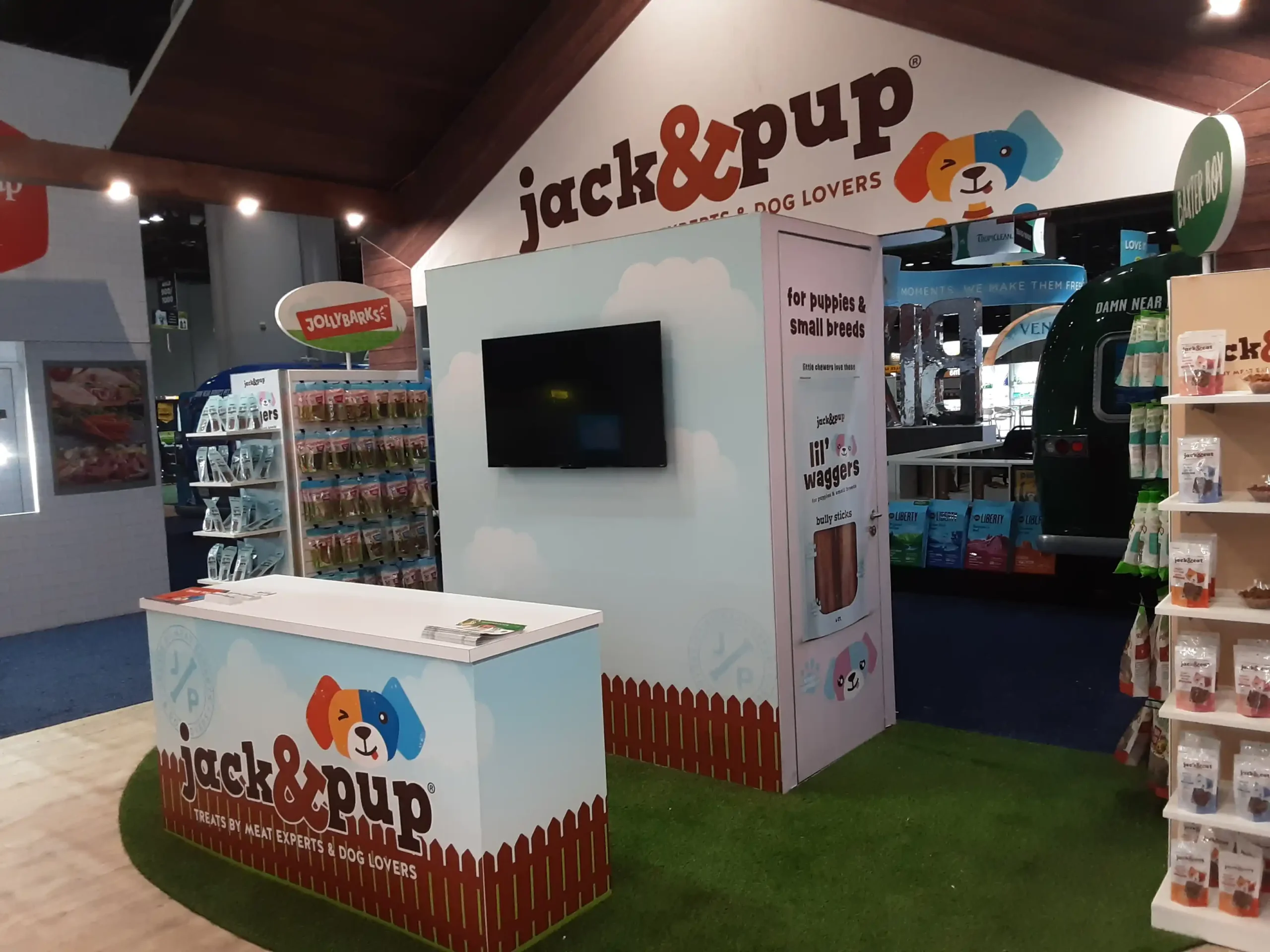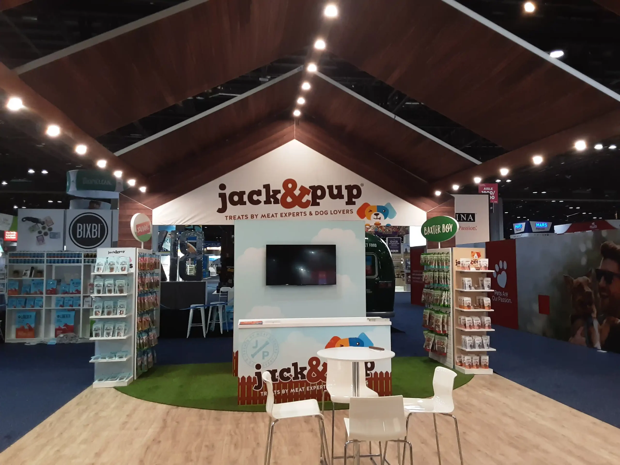 By transforming a simple product display into an immersive brand environment, the exhibit successfully communicated what Jack & Pup represents: simple ingredients, happy dogs, and treats made with care.
