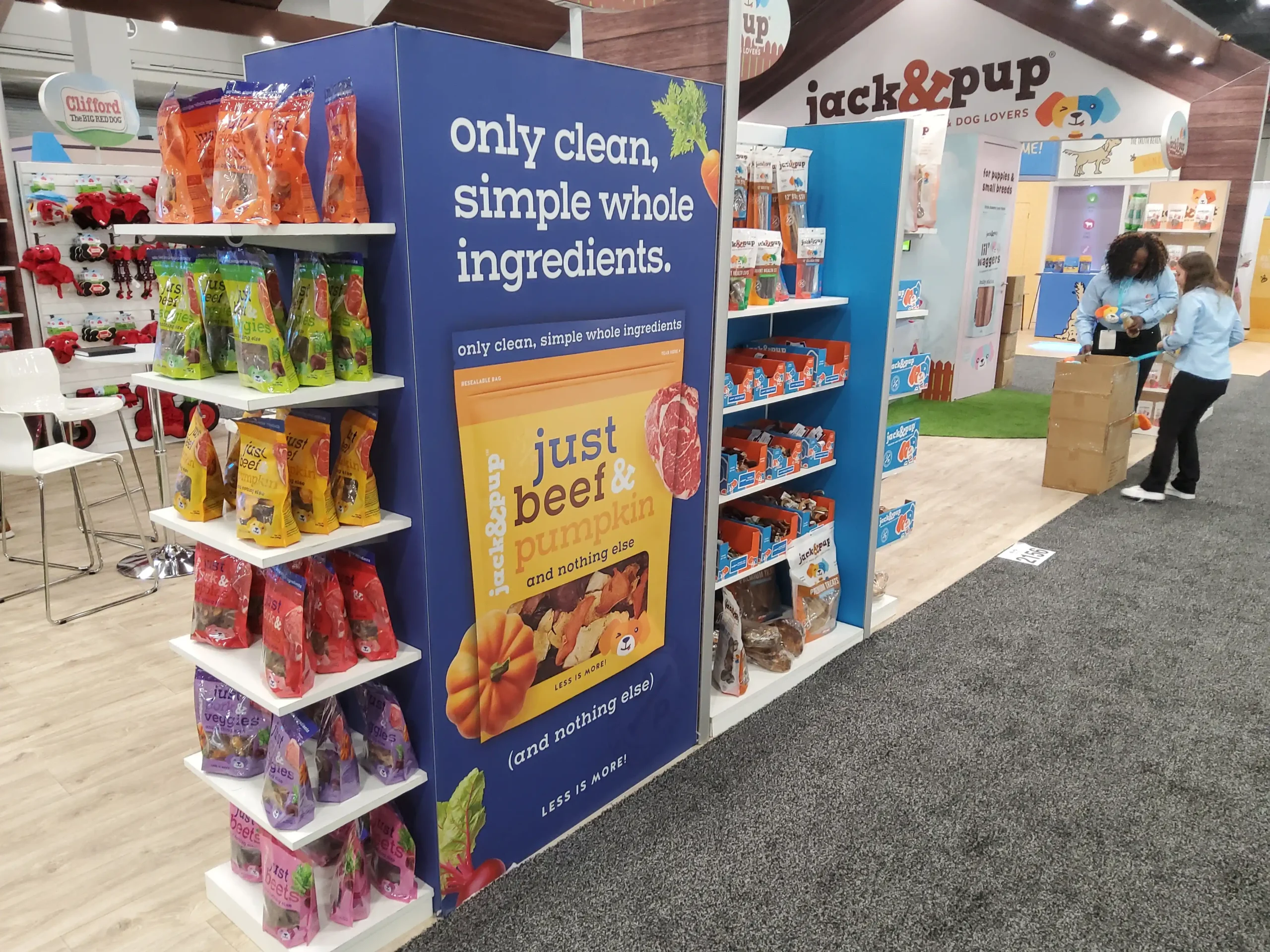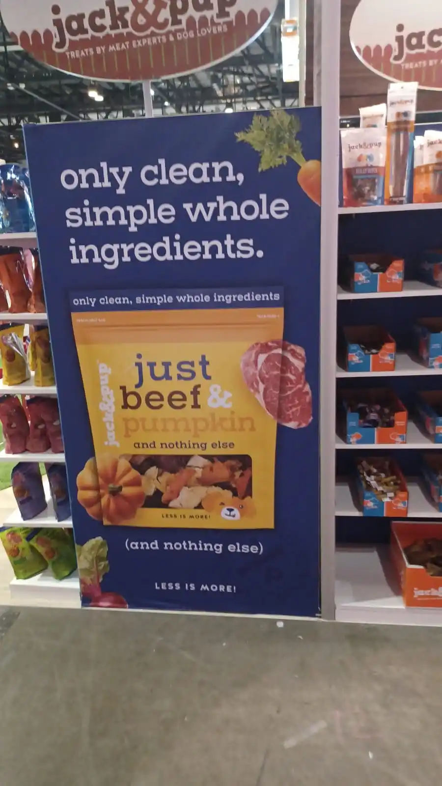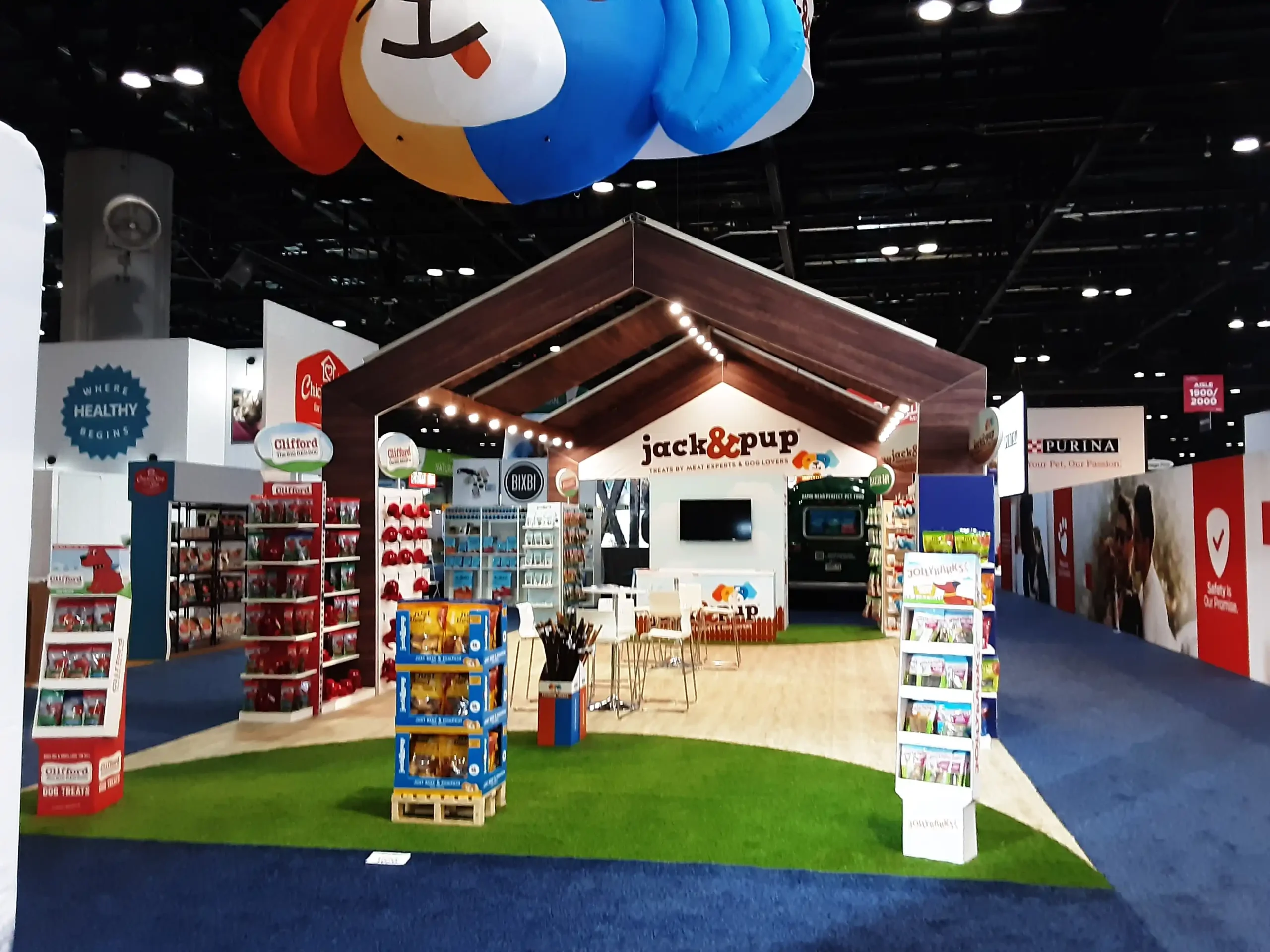 By transforming a simple product display into an immersive brand environment, the exhibit successfully communicated what Jack & Pup represents: simple ingredients, happy dogs, and treats made with care.
