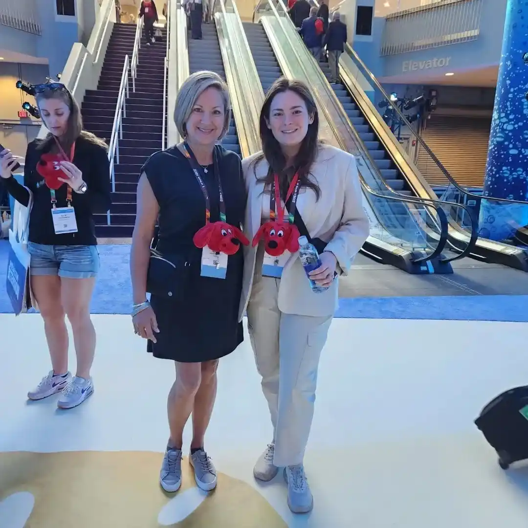 A giant inflatable dog mascot suspended above the booth acted as a visual landmark across the show floor, instantly attracting attention and making the space easy to spot from a distance.