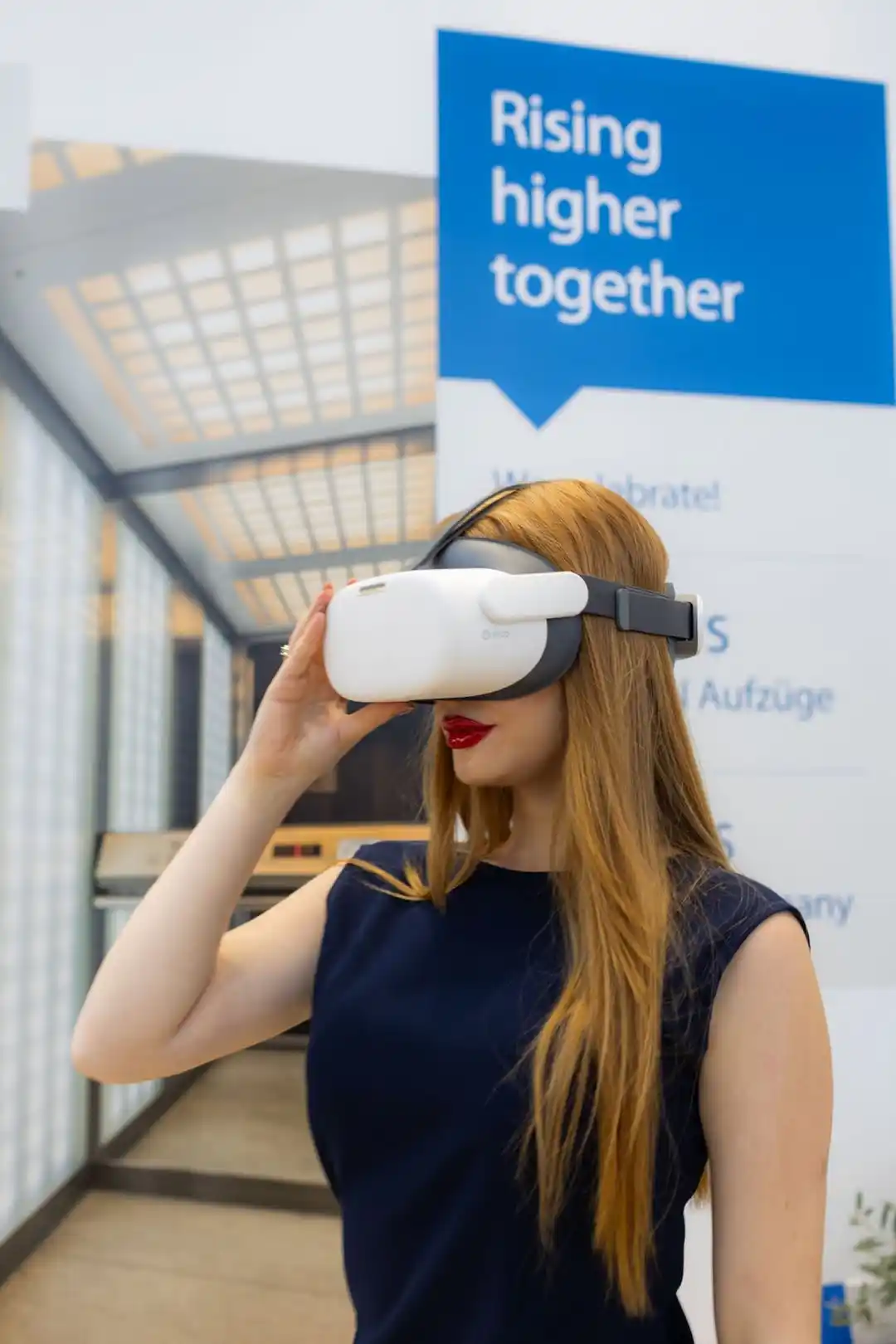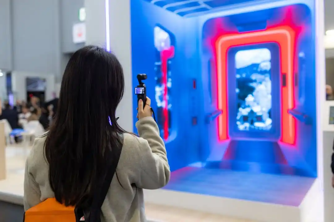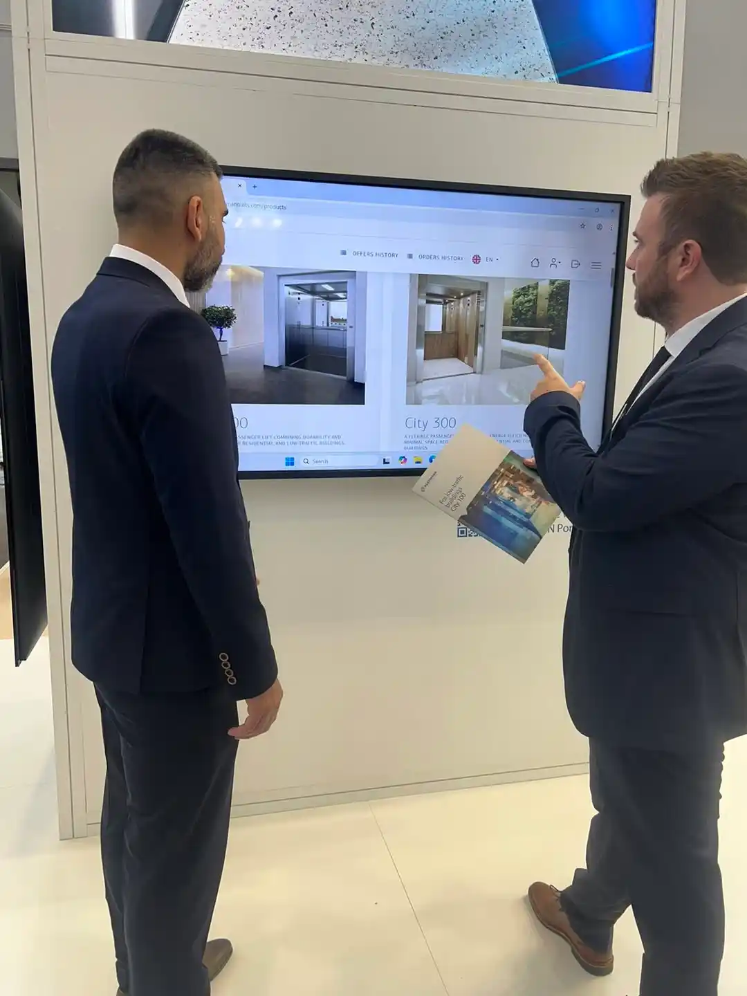 A VR experience station allowed guests to step inside virtual elevator environments and explore real project installations around the world. By wearing VR headsets, visitors could experience elevator spaces and architectural applications in a way that traditional displays cannot provide.